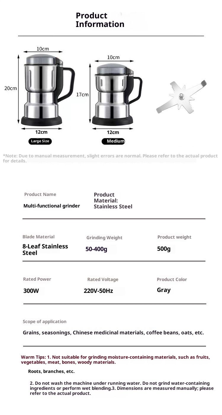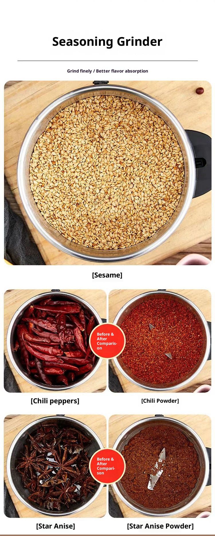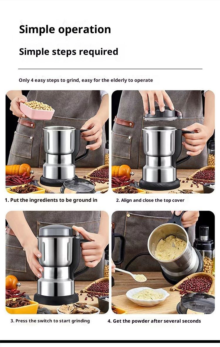 1. Do not fill the container completely; fill it halfway and grind multiple times if needed.
