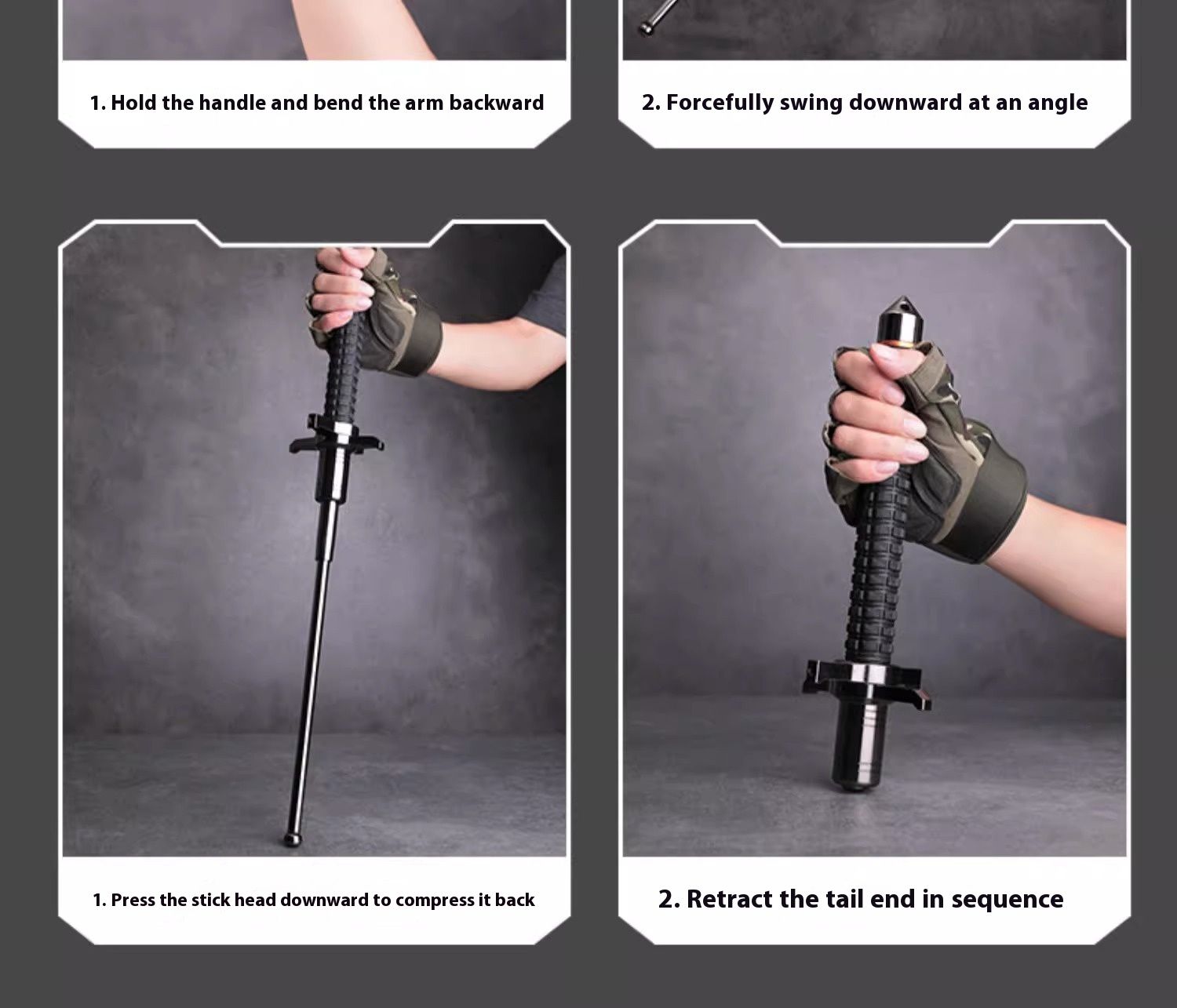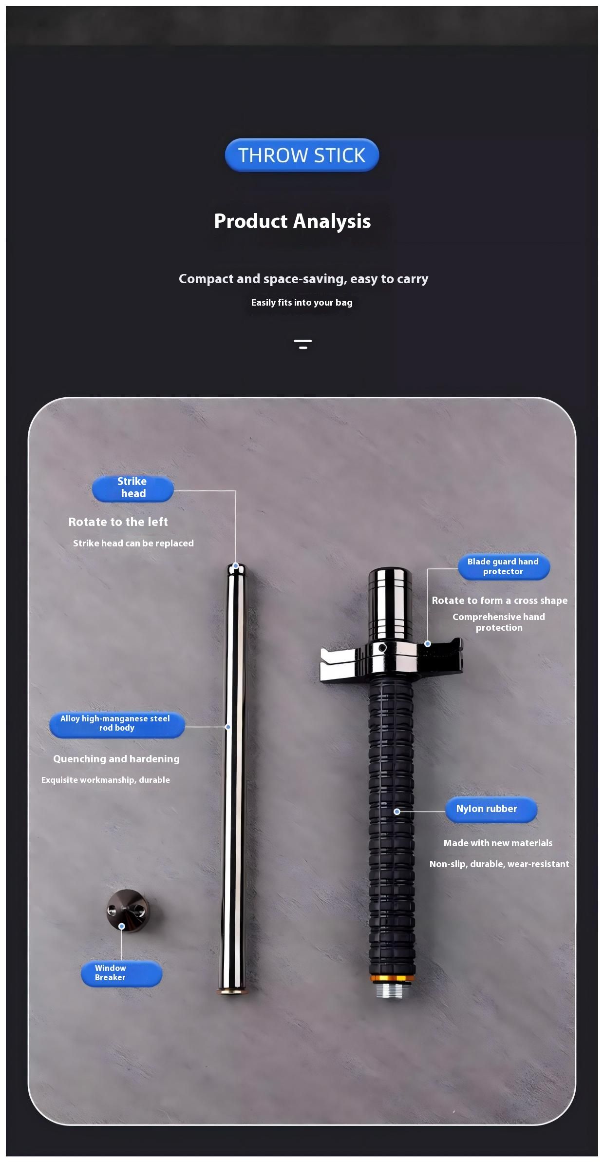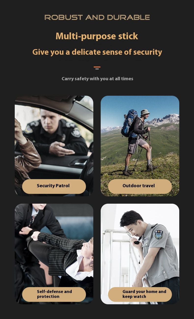 Multifunctional tactical telescopic three-section baton, trekking pole